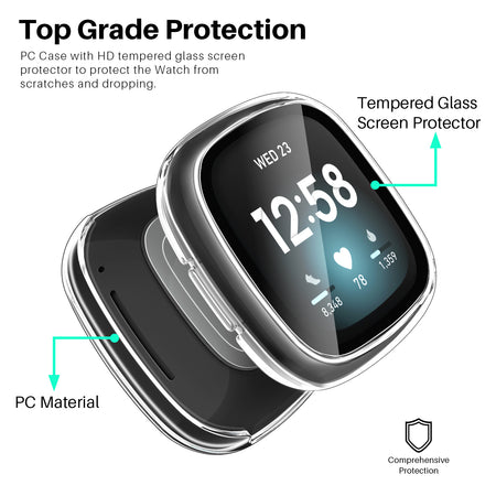 LK 2 Pack Screen Protector Case Compatible with Fitbit Versa 3/Fitbit Sense, Hard PC Tempered Glass Full Coverage Cover Protective for Fitbit Versa 3/Sense Smartwatch, Clear